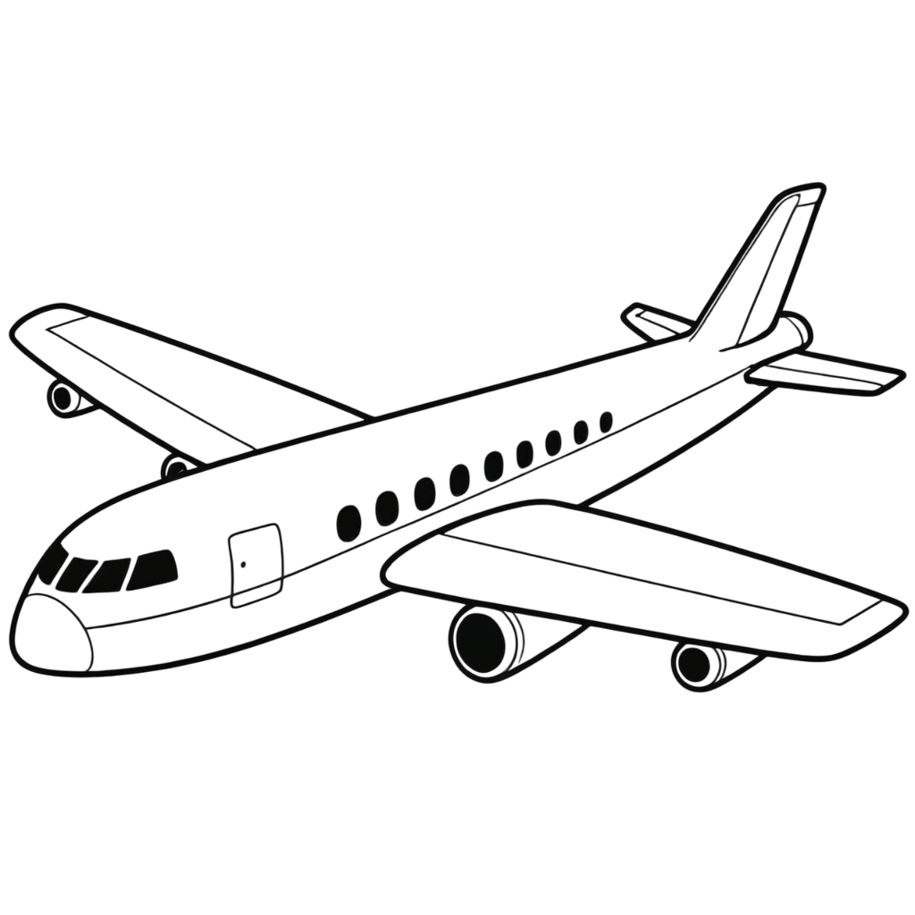 Un disegno di aereo semplice e amichevole, perfetto per bambini della scuola dell'infanzia e primaria.