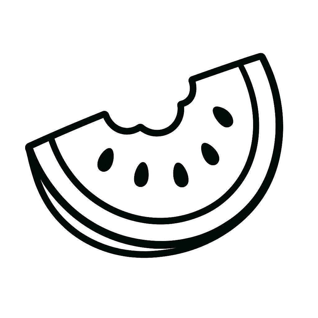 Un'anguria intera con una fetta accanto, perfetta per esercizi di colore e temi alimentari.