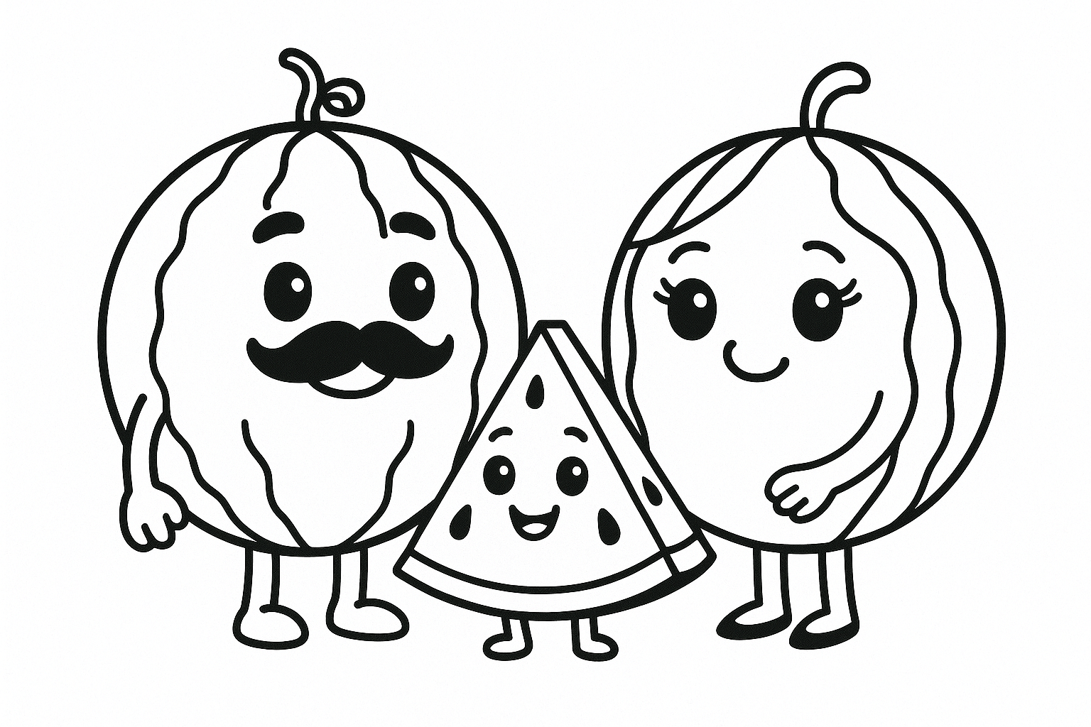 L'anguria e fresca, dolce e perfetta per avventure estive di colore! Qui trovi bellissimi disegni di angurie da colorare: dalla famiglia di angurie alle angurie che suonano la chitarra o diventano navi pirata. Ideali per bambini e menti creative!