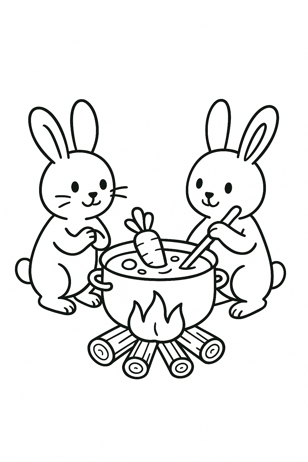 Due conigli curiosi vicino al fuoco in una scena tenera per bambini.