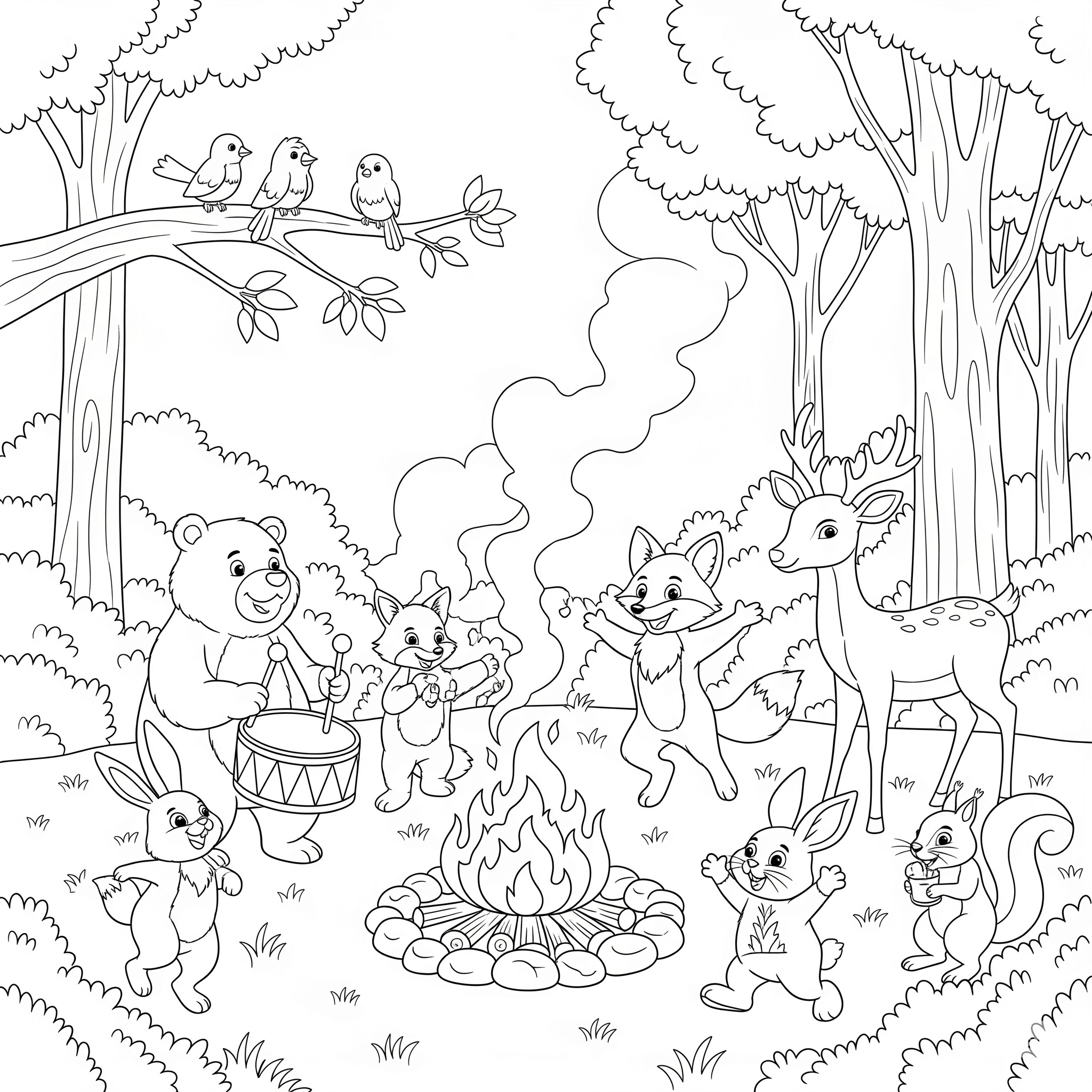 Festa intorno al falo - Disegno da colorare