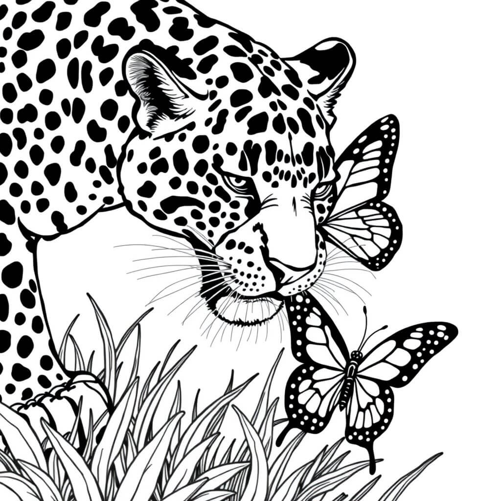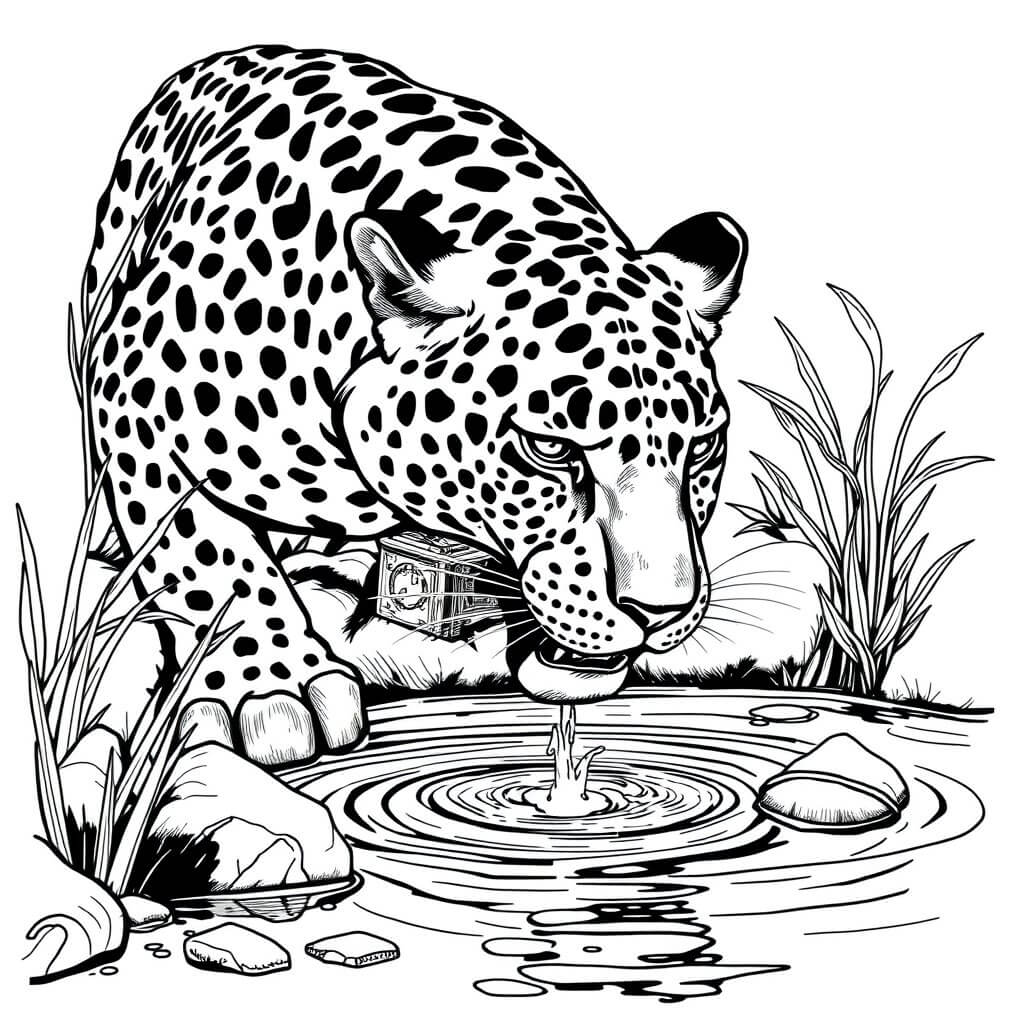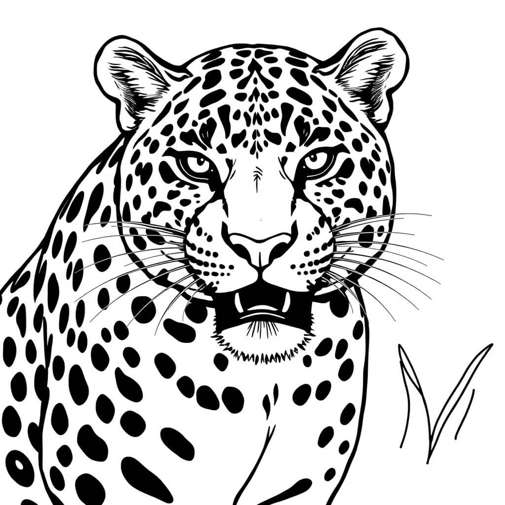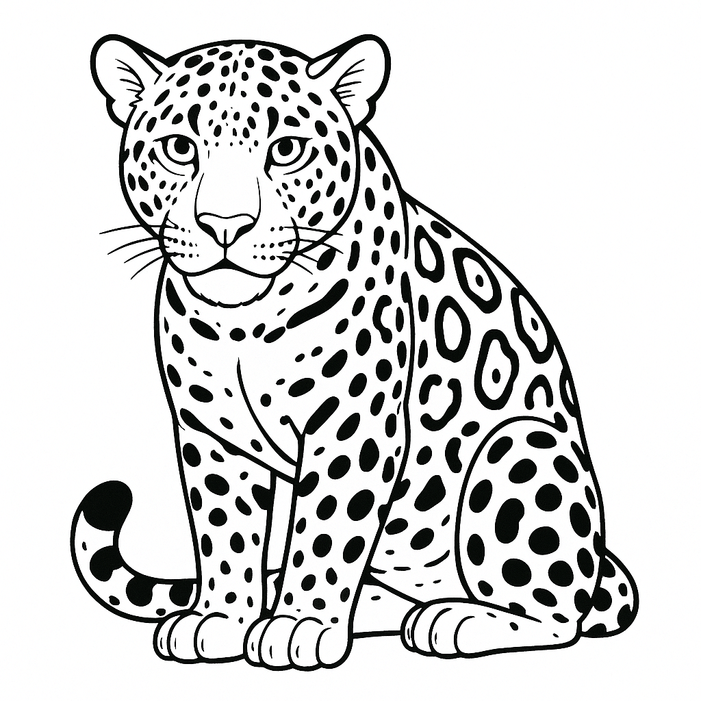 Un giaguaro maestoso in stile classico, ideale per colorare macchie e dettagli del manto.