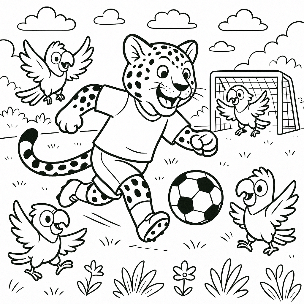 Un giaguaro sportivo che gioca a calcio con un pallone.