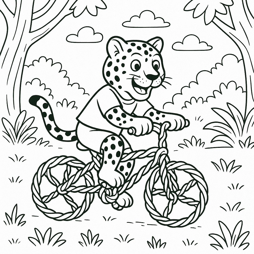 Un disegno allegro e creativo con un giaguaro che pedala felice.
