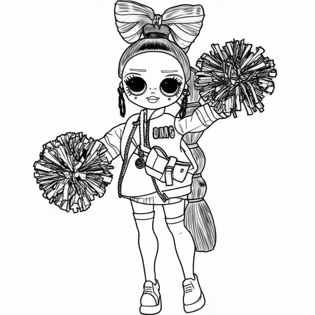 Una bambola LOL cheerleader con pon pon, perfetta per colori vivaci e look sportivo.
