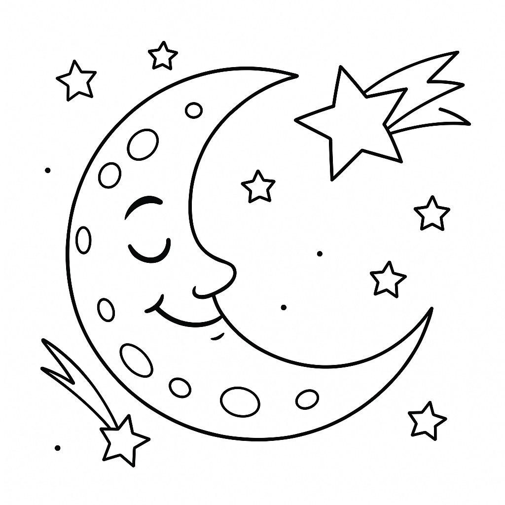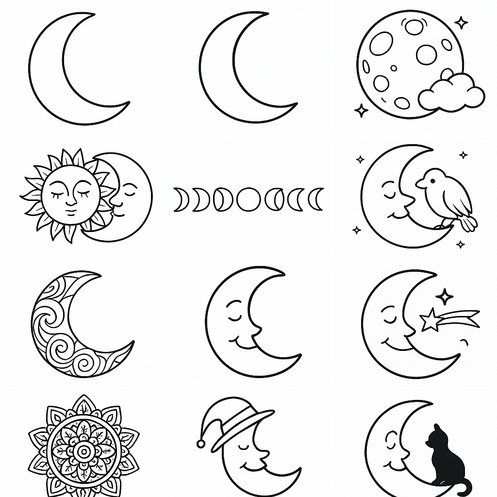 Scopri una raccolta speciale di disegni della luna da colorare. Troverai mezzalune eleganti, mandala dettagliati e paesaggi notturni perfetti per bambini e adulti che vogliono colorare il cielo notturno.
