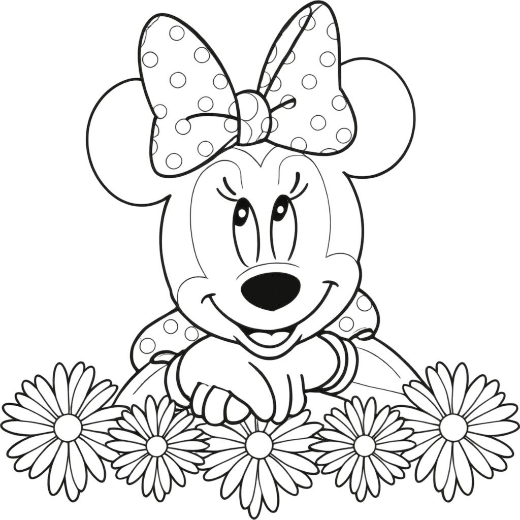 Minnie Mouse con fiori da colorare