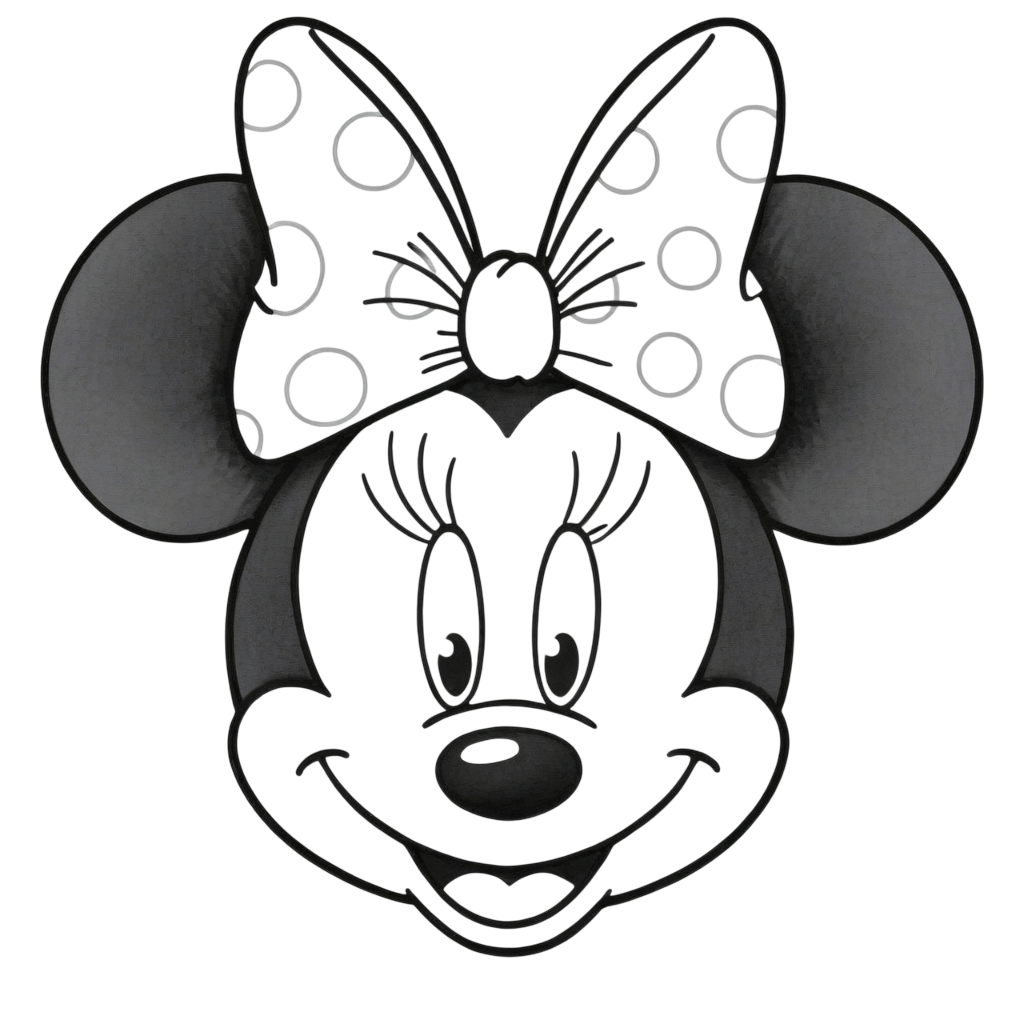 Un bel ritratto di Minnie Mouse, perfetto per curare espressione del viso, fiocco e dettagli del look.