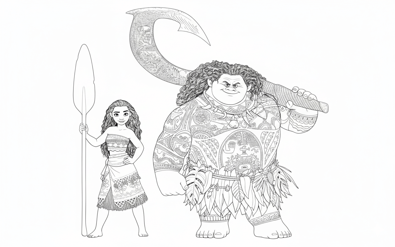 Moana e Maui insieme in una nuova avventura sull'oceano. Perfetto per contrasti decisi.