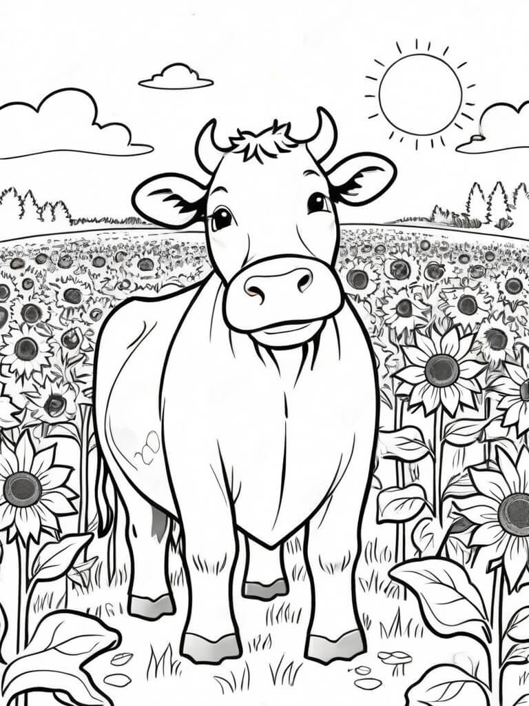 Mucca con girasoli da colorare