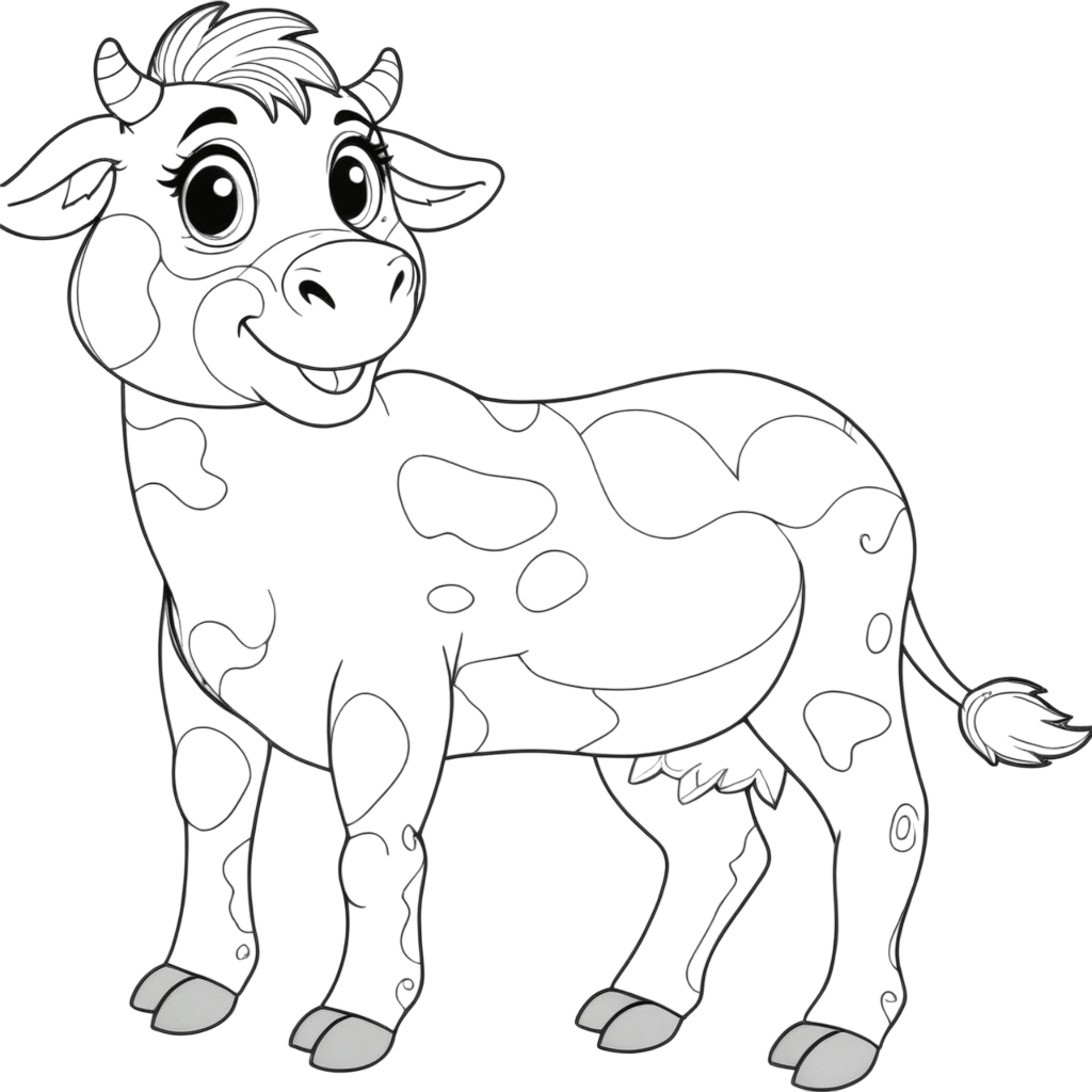 Una mucca classica da colorare: scegli le macchie tradizionali o colori creativi.