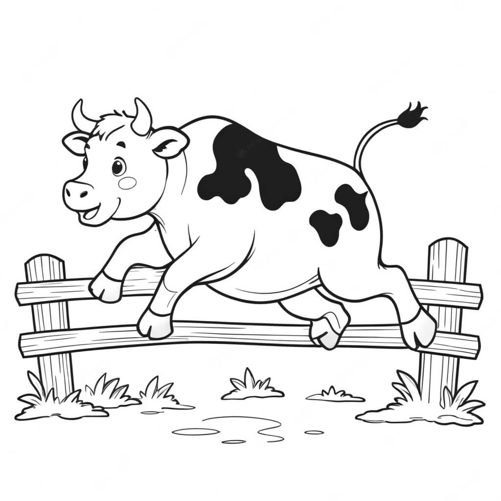 Mucca che salta la staccionata da colorare