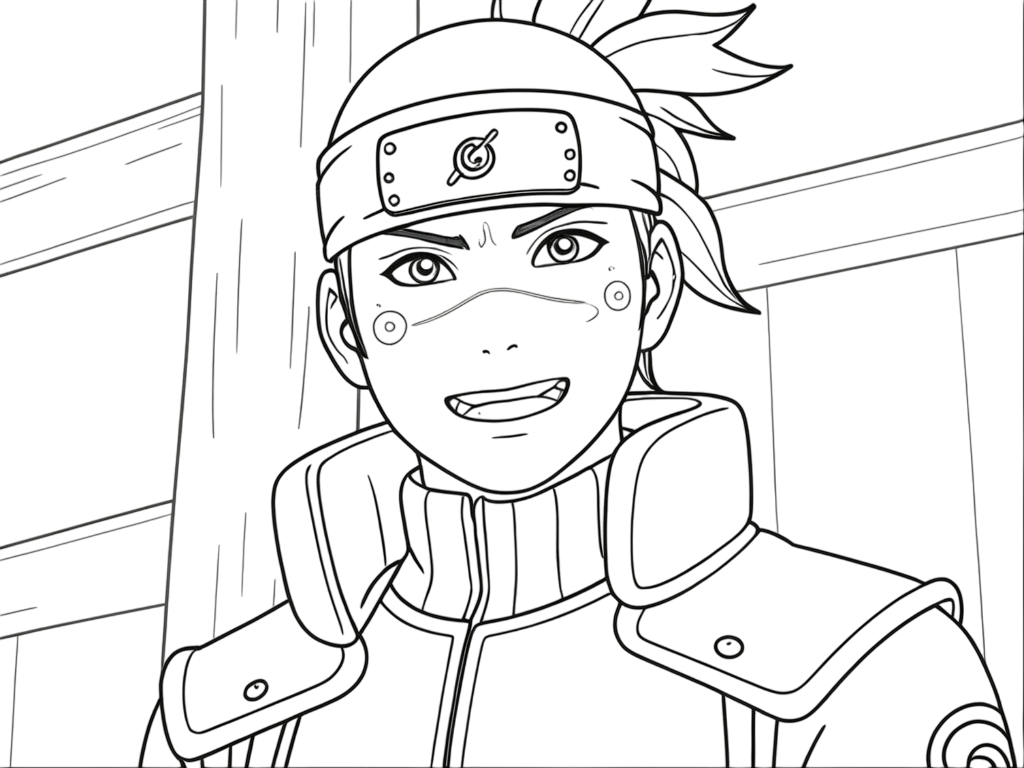 Iruka Sensei, uno dei primi maestri di Naruto, con un'espressione gentile, un soggetto tranquillo da colorare.