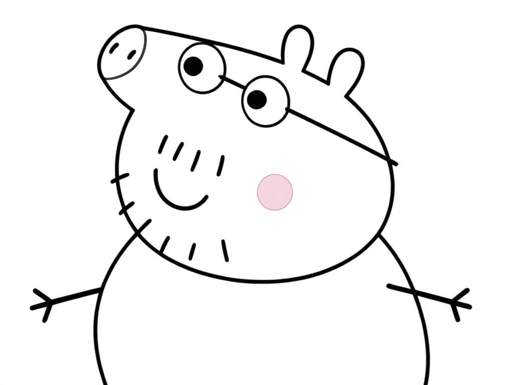 Papa Pig e divertente, un po' pasticcione e sempre pronto a scherzare: coloralo con tinte allegre.
