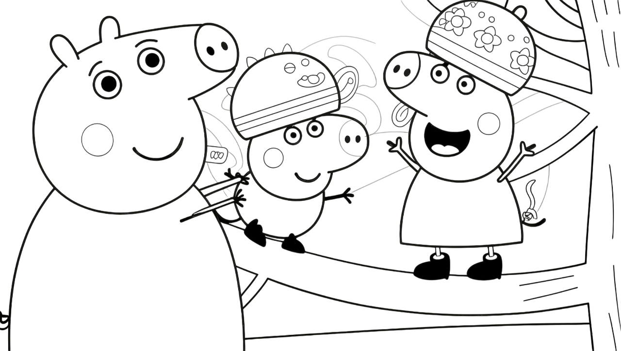 Peppa Pig gioca sotto l'albero da colorare