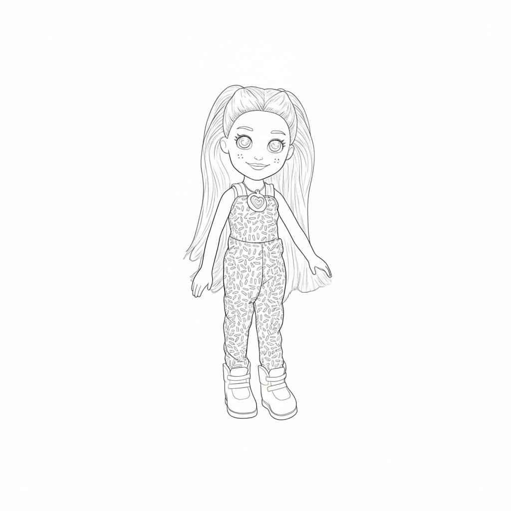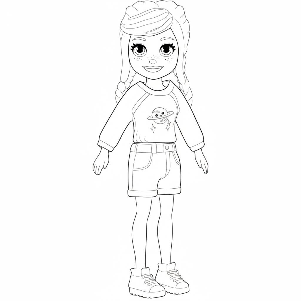 Polly in un look moderno con occhiali, ottima per colorare dettagli e accessori.
