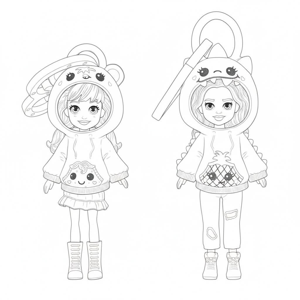 Tanti look di Polly nello stesso disegno, perfetti per sperimentare outfit e colori diversi.