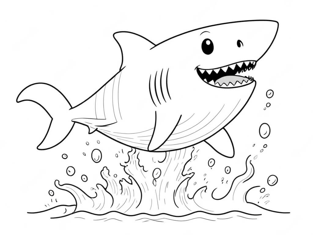 Uno squalo allegro che salta fuori dall'acqua, perfetto per colori vivaci.